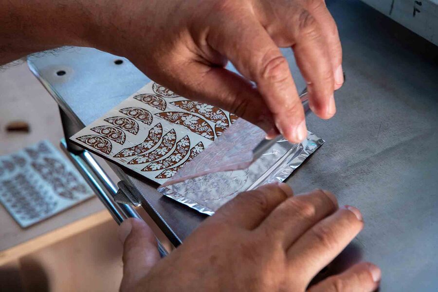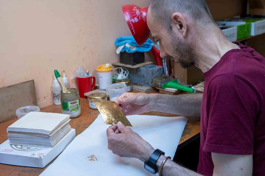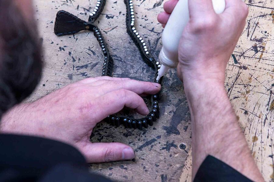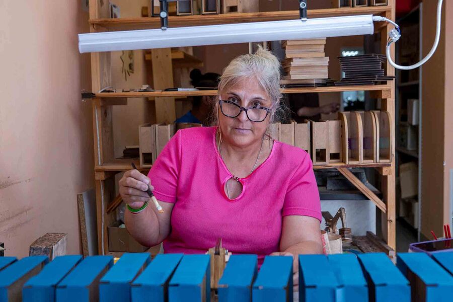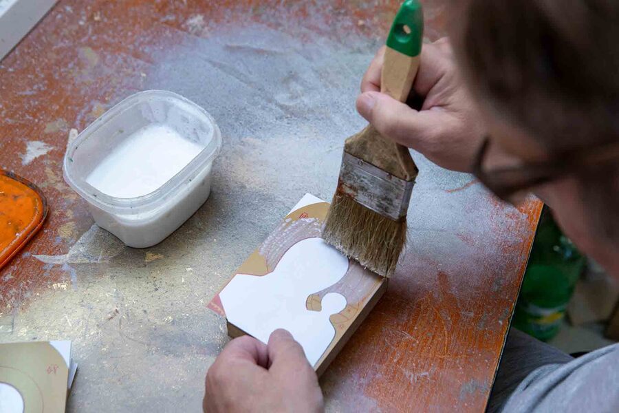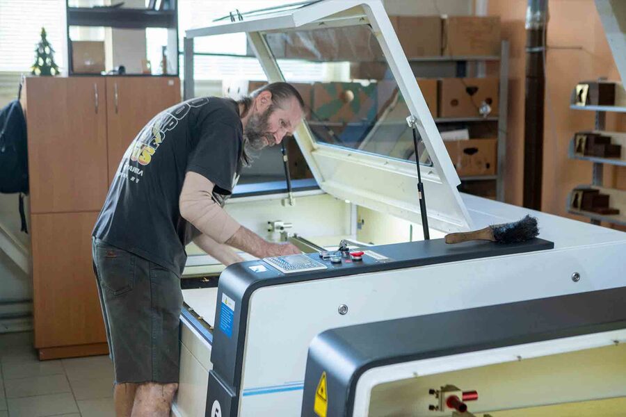The skilled artisans of the workshop continue creating wonder after wonder. Working with plywood, leather, and wood, they craft crosses, icon covers, belts, and children's building sets. Nikita Provlotsky's photos capture their delicate work.