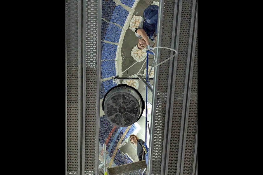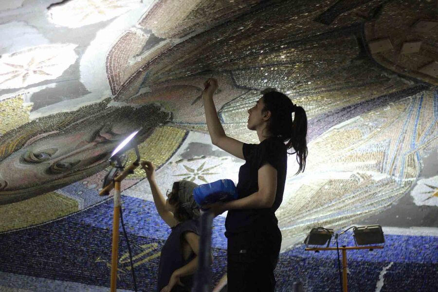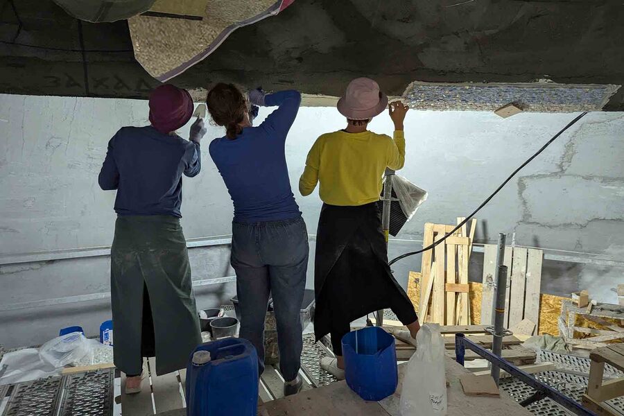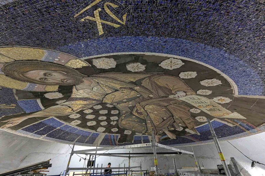 Artists from our monastery’s mosaic workshop are now at work on a meaningful new commission — a majestic mosaic of the Saviour for the Cathedral of the Nativity of Christ in Chelyabinsk. Photos by Maksim and Ioann Dudarau.