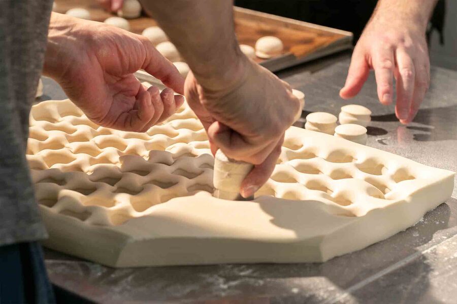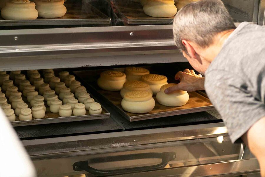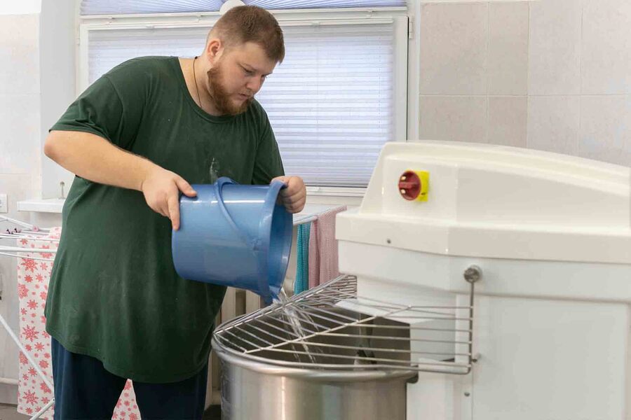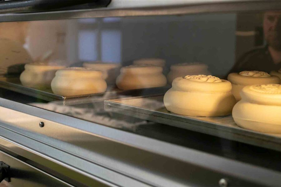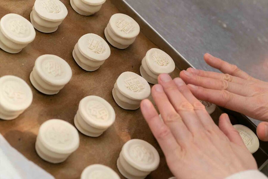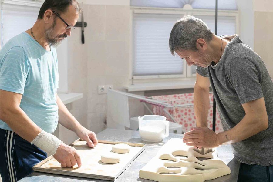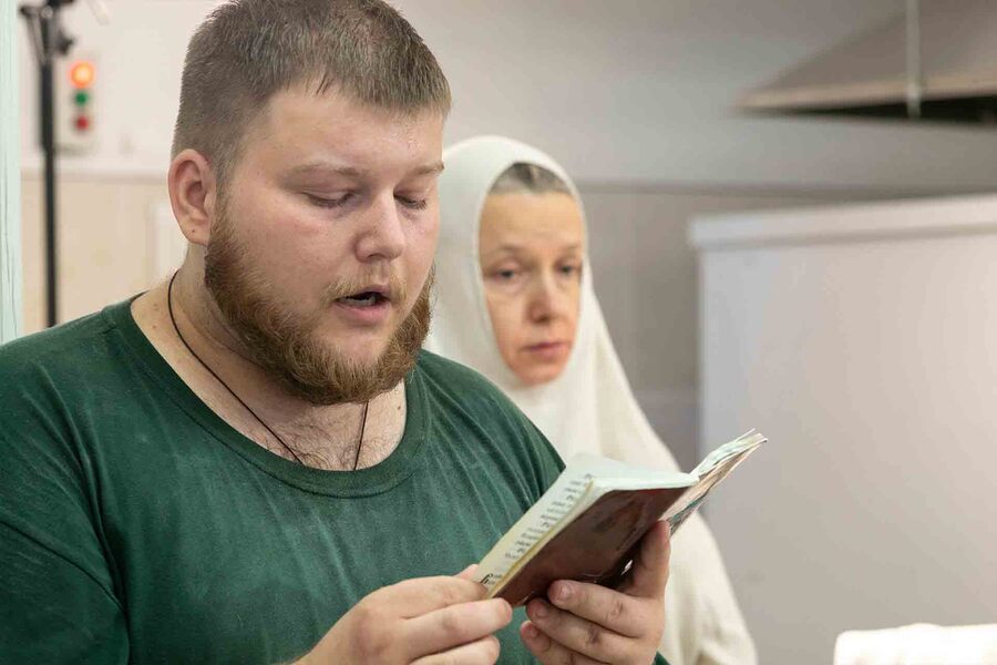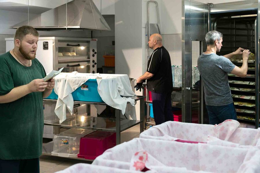 In quiet and prayer, the holy bread is prepared in our bakery. Stamped with the inscription IC XC NIKA (Jesus Christ Conquers), it is used during the Liturgy and shared with the faithful after Holy Communion. Photos by M. Chernogolov.