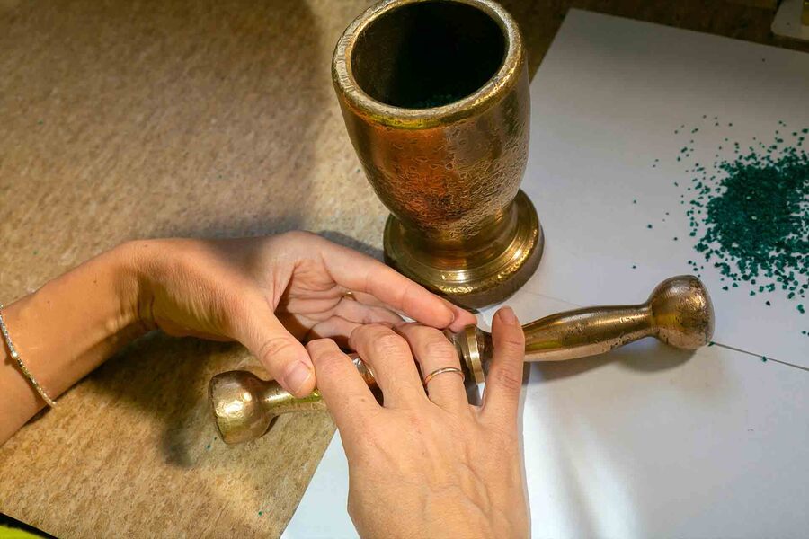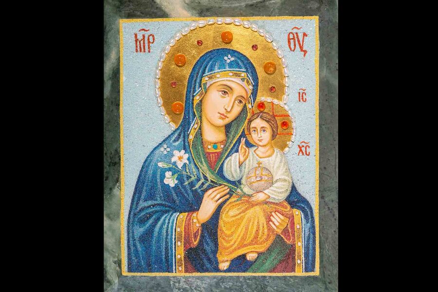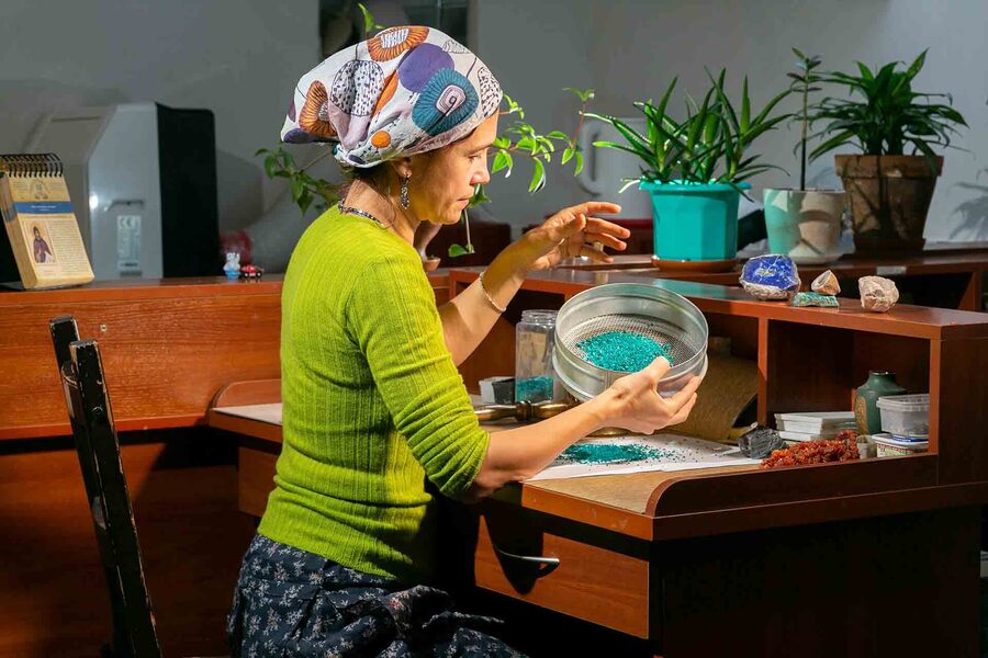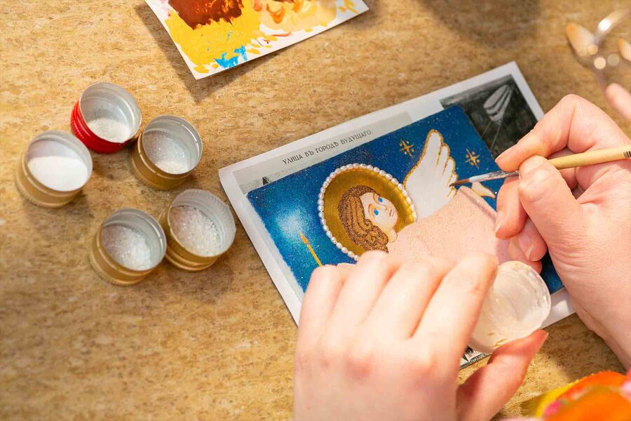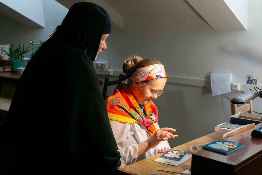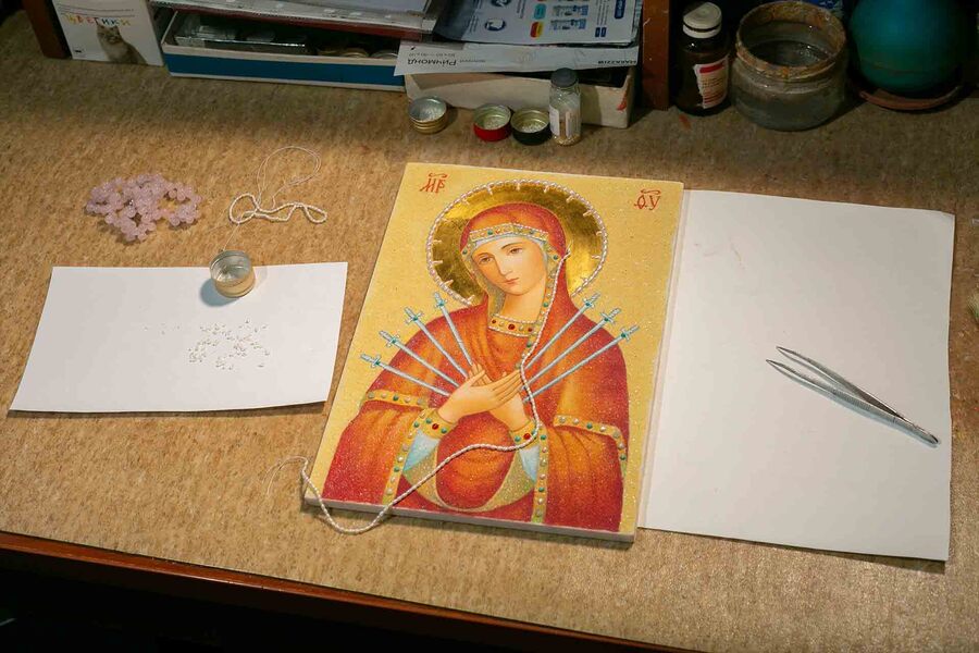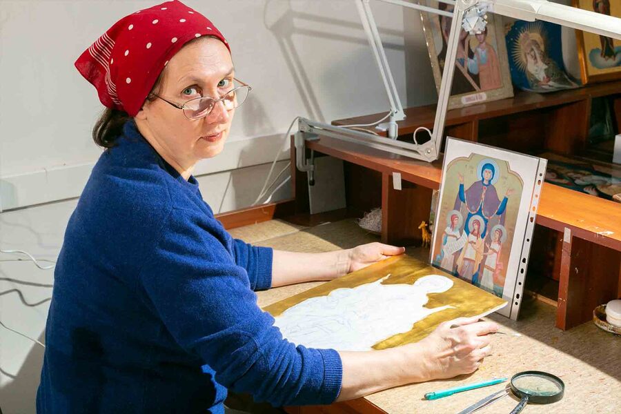 In our monastery’s workshop, the artisans practice a unique art form: creating Orthodox icons from finely ground, natural stone. The inherent vibrancy of these minerals ensures the colours remain fresh for years. Photos by Maxim Chernogolov.