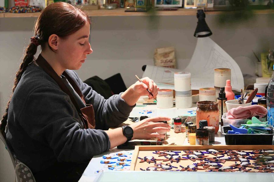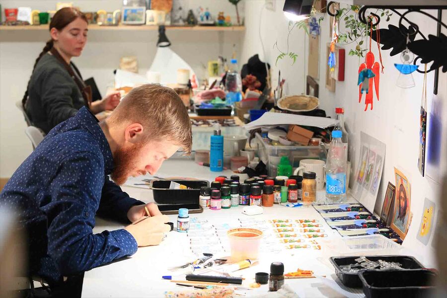 Stained-glass windows, icons, and delicate glass angels — each piece is a handmade marvel whose beauty hints at the divine. In this photo album, we step inside our workshop to see how artisans give soul to glass. Photos by M. Chernogolov.