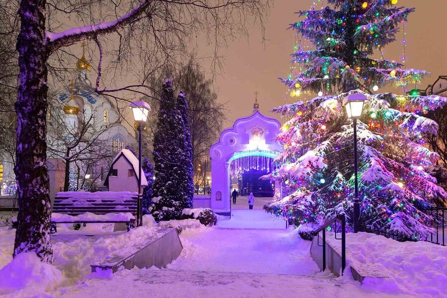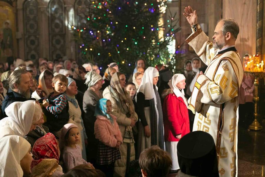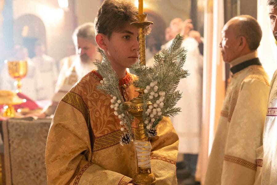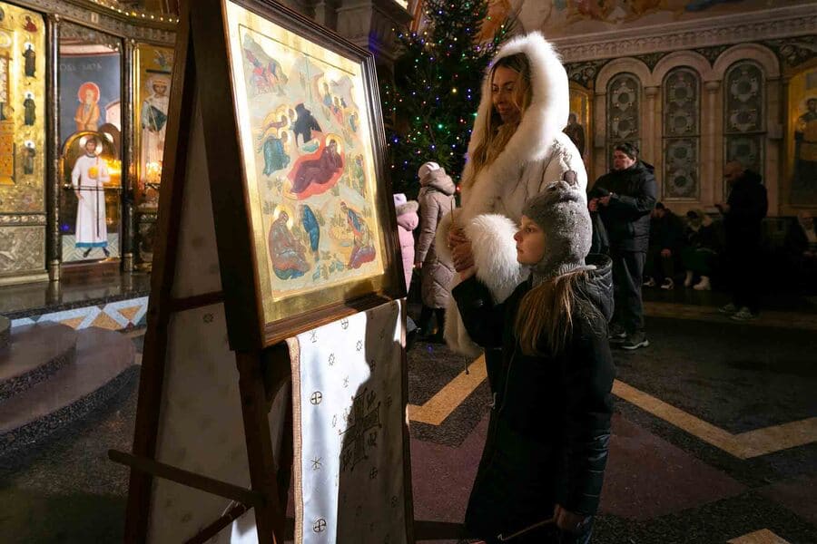 The Nativity icon graces the analogion as the church fills with festive light and sound. In harmony with the Christmas carols, the soul joins in joyful praise: “Christ is born! Glorify Him!” Photos by Maxim Chernogolov.