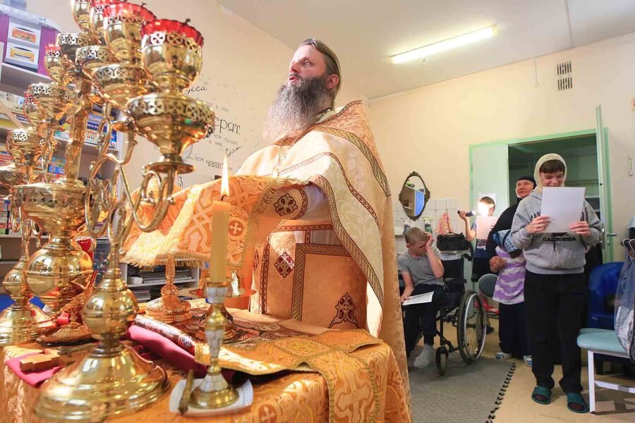 We recently celebrated the Divine Liturgy at a care home for children with disabilities, which is under the spiritual care of our monastic community. The children were able to join in prayer and receive the Holy Mysteries. Photos by M. Chernogolov.