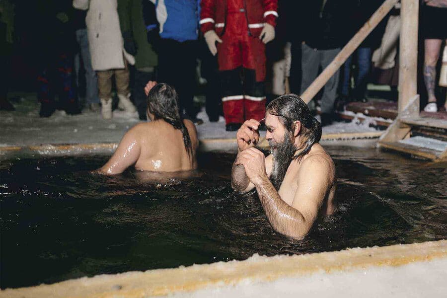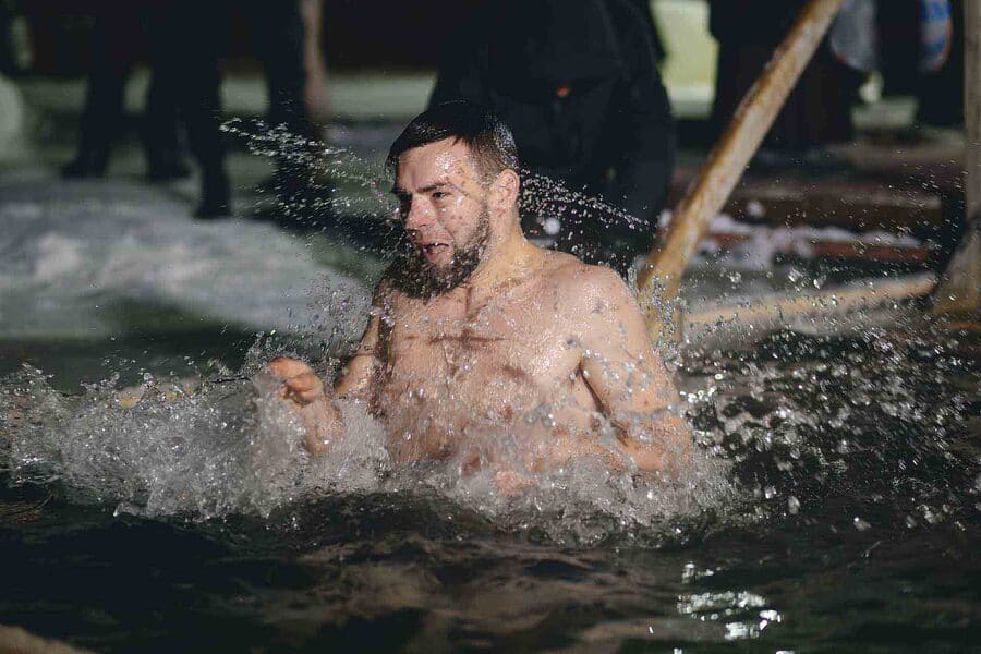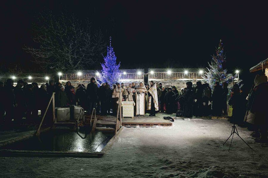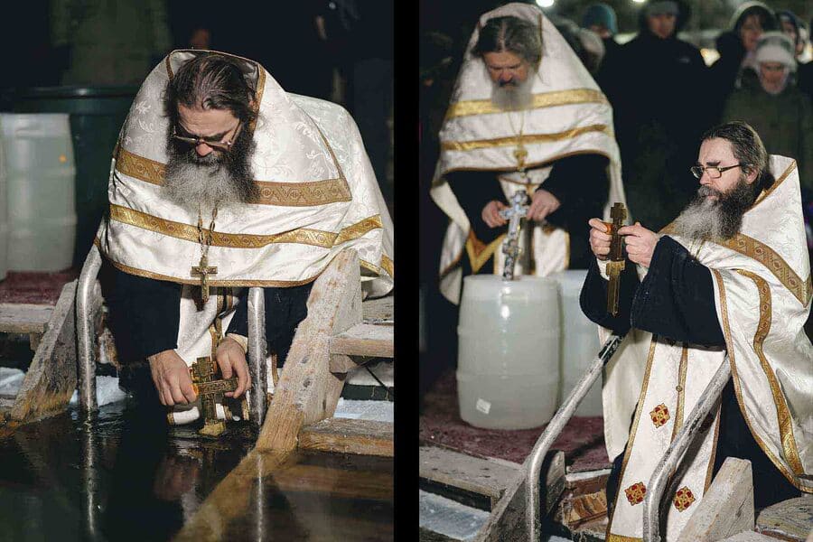 Following the Divine Liturgy, a Theophany moleben with the blessing of the waters was served outdoors at our monastery's farmstead. After the service, those who wished could plunge into the icy water. Photos by Irina Pulko.