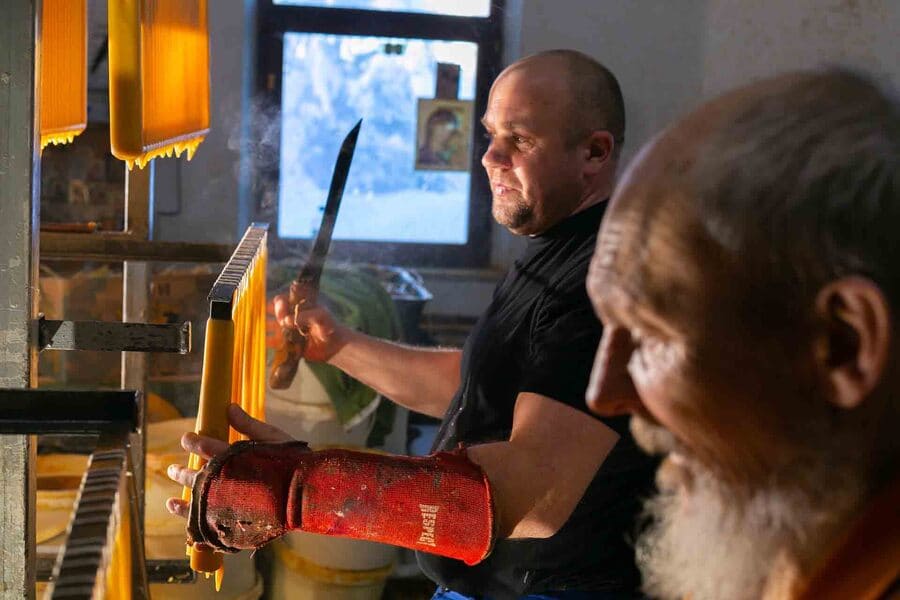 In the days leading up to the Feast of the Meeting of the Lord, our monastery's candle workshop hums with quiet labor — preparing the candles that will soon be blessed during the festive services. Photos by M. Chernogolov.