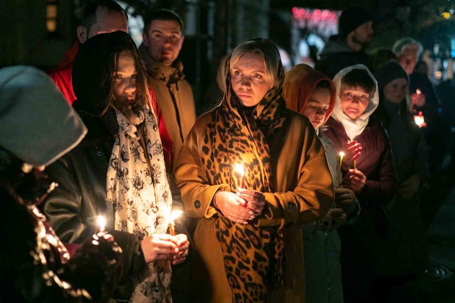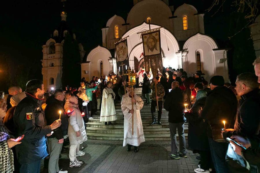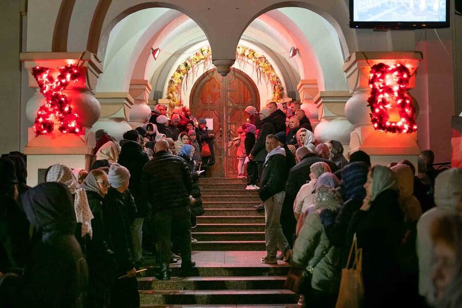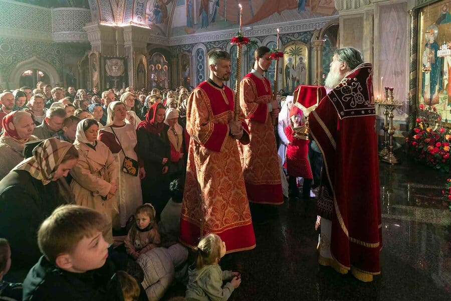 Our church was packed during the Paschal service, everyone glowing with that long-awaited joy — the joy of meeting the Risen Christ and sharing in the experience as one community. Photos by M. Chernogolov and I. Pulko.